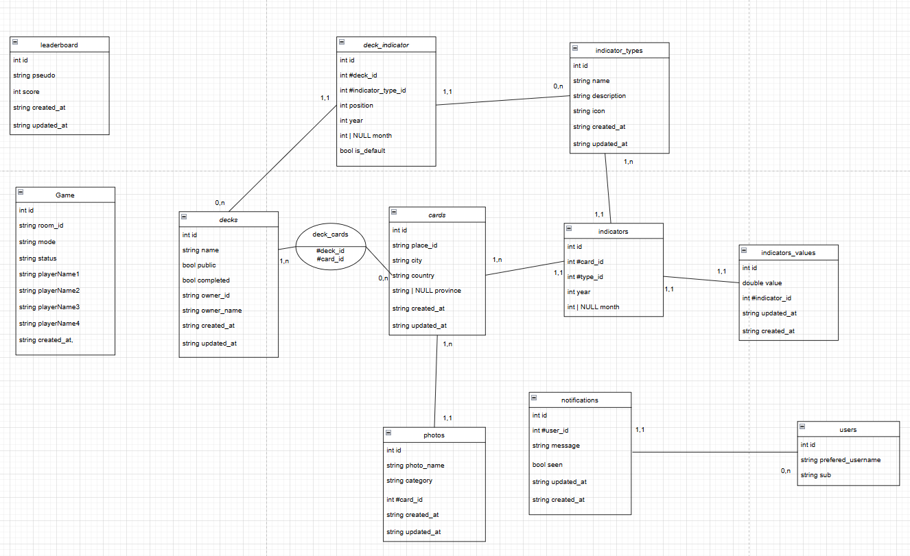 Depends(get_current_user)(token required). Public or visitor-tolerant endpoints:Depends(get_optional_current_user)(token optional).Game WebSocket: authentication not mandatory; a nickname ( preferred_username ) is enough to play. If a token is provided, events can be linked to an identified user.